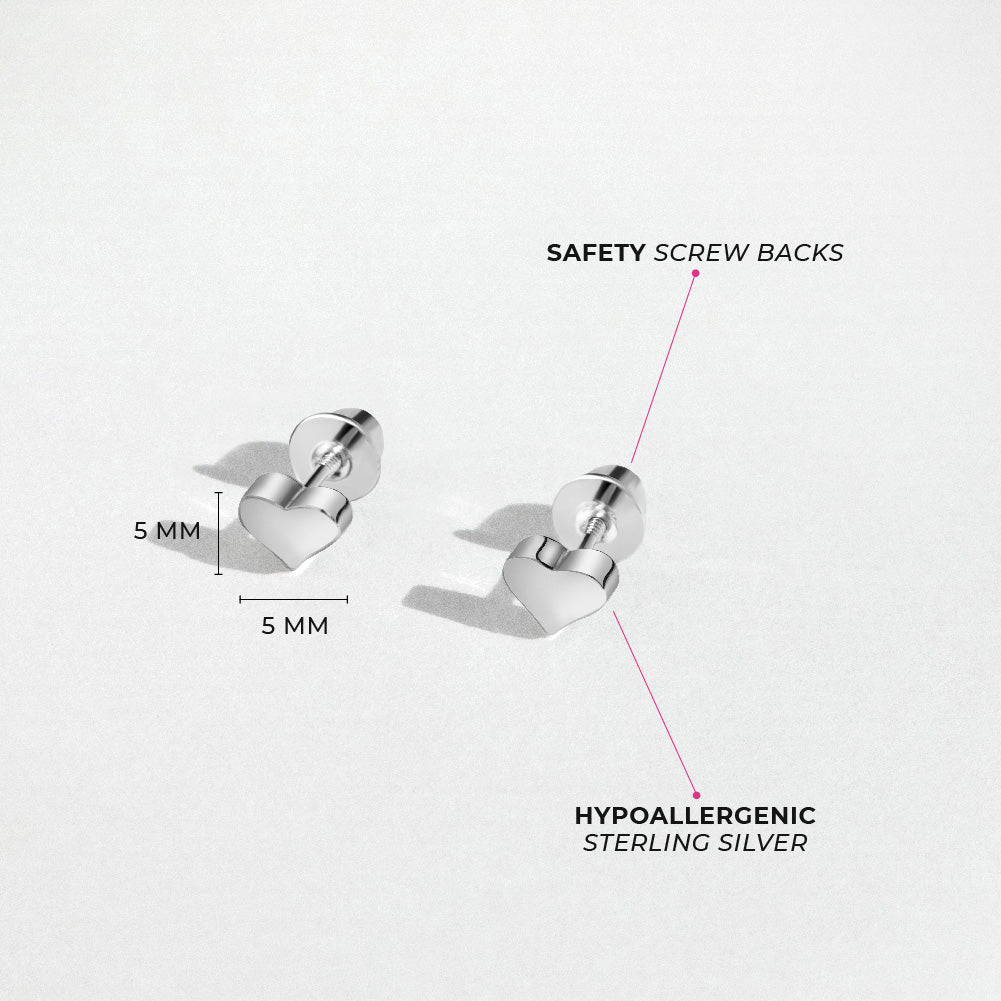 2. Sterling Silver Puffed Heart Kids Earrings Ages 0-10